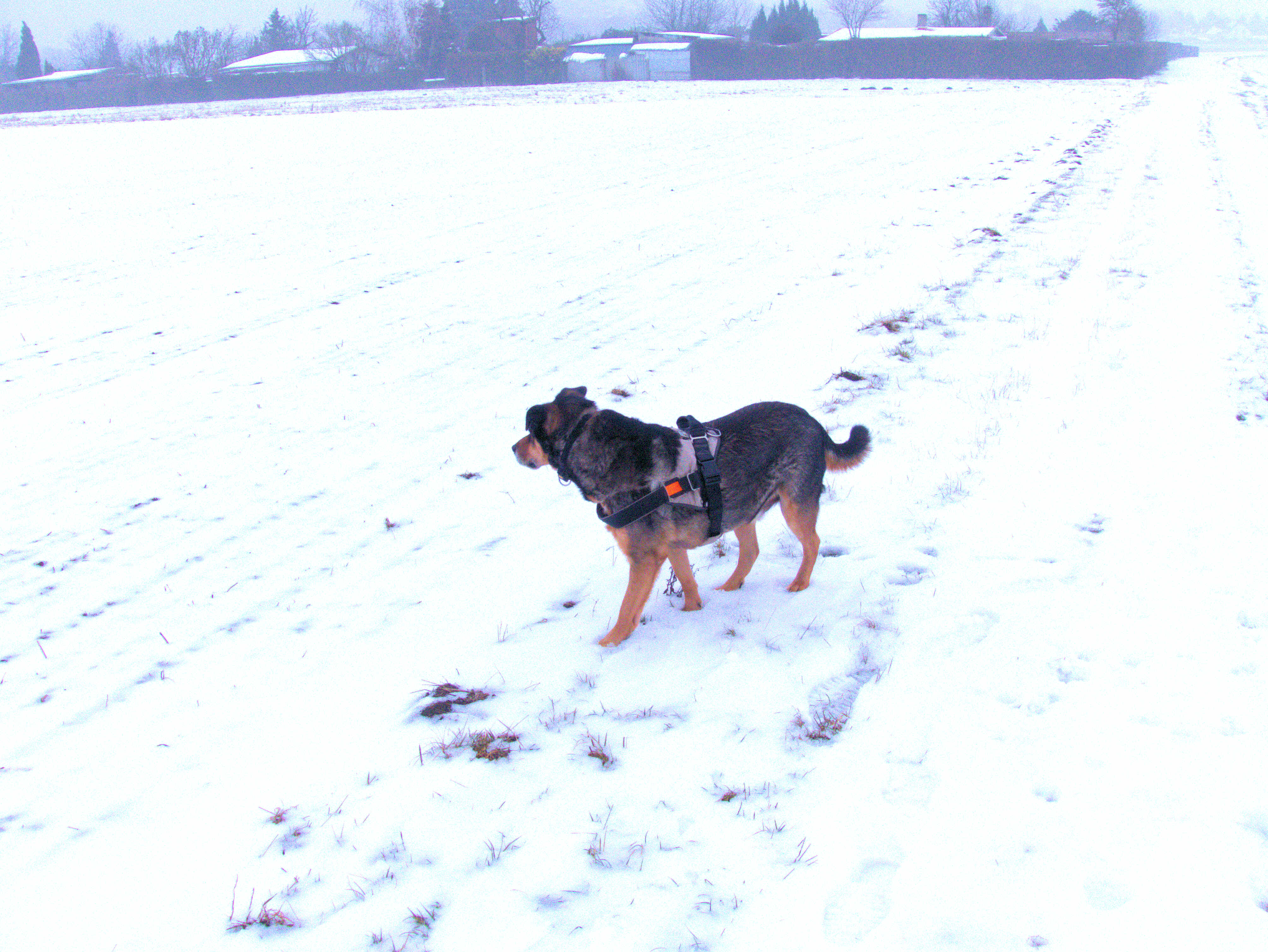 Ein neues Jahr hat begonnen und die prollige Knallerei geht anscheinend dem Ende entgegen. Dafür hat es tatsächlich Anfang Januar einmal einen richtigen Winter mit etwas Schnee und Frost gegeben. Ramon hat sich davon allerdings nicht beeindrucken lassen und auf einen erhöhten Aktivitätsmodus geschaltet. Die Spuren von Lebewesen mit vier Beinen sind gut sicht- und riechbar und daher eine gewaltige Verlockung. Auch daran ist die deutlich gesteigerte Kondition zu erkennen, was leider auch eine längeren Nutzung der Leine bedeutet.